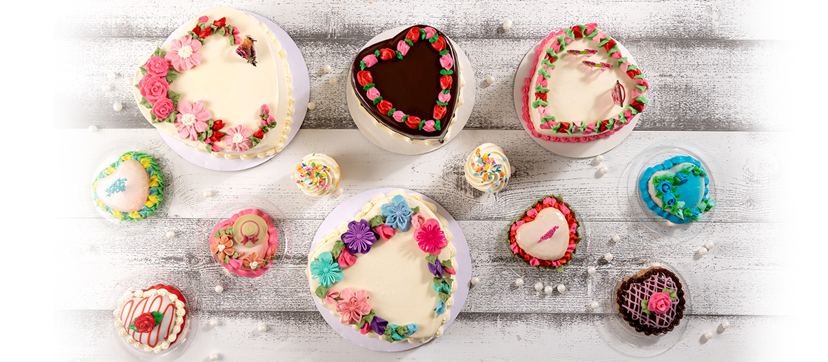 Mother's Day MenuSpecialty Heart Cakes Gina’s Strawberry Heart Cake Two layers of yellow cake filled with a layer of strawberry filling. The cake is iced in a deliciously sweet strawberry buttercream. Available in 6" & 8" hearts only. Mozart Heart Our Signature cake...Heart shaped! Three split layers of yellow cake filled with a layer of raspberry filling and a layer of Bavarian cream filling. The cake is iced in vanilla butter cream and finished with melted chocolate fudge. Available in 6" & 8" hearts only. Mother's Day Favorites Cupcakes Our light as a feather cupcakes, sweetens up any celebration! Available in yellow, chocolate, and a variety of specialty flavors and decorations. Double Layer Heart Cake This heart is sure to take the cake at any Mother's Day celebration! Decorated to impress with buttercream frosting. Includes our buttery, yellow cake iced in choice of homemade vanilla or chocolate buttercream. Available in 6" & 8" hearts only. Mini Heart Cake A personal sized yellow heart cake delicately decorated for Mom. Available dipped in vanilla icing or fudge icing. Mini Red Velvet Heart Cake A personal sized red velvet heart cake dipped in vanilla icing and delicately decorated with a red rose. Petite Four A delicate, bite size dessert with three layers of yellow cake filled with a thin layer of chocolate mousse and a thin layer of raspberry. Dipped in either white chocolate or milk chocolate. Single Layer Heart Cake This heart is sure to take the cake at any Mother's Day celebration! Decorated to impress with buttercream frosting. Includes our buttery, yellow cake iced in choice of homemade vanilla or chocolate buttercream. Available in 6" & 8" hearts only. Single Layer Strawberry Shortcake Heart Our famous buttery, yellow cake heart shaped iced in our homemade whipped cream and topped with fresh strawberries. Only available for Mother's Day. Sugar Cookies Sugar cookie dough rolled, and hand cut into Mother’s Day shapes and sizes. We then decorate with colorful sugar to create a beautiful and delicious treat!